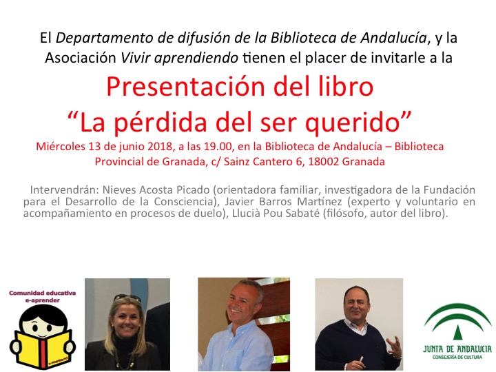 Te recuerdo la presentación que mañana haremos de mi libro "La pérdida del ser querido". Será en la sala 1 de la Biblioteca de Andalucía. Entrada libre.